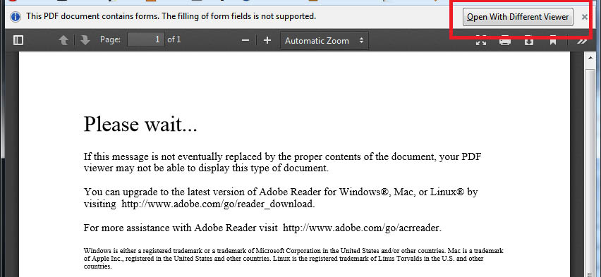 - In the top right corner of the browser window, look for a "button" that says "Open with a Different Viewer"