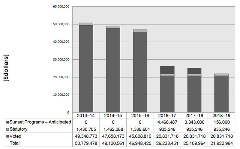 The NPMO funding profile for 2015-16 included $400 thousand which was identified as the cost of winding down the initiative in its originally expected sunset year (e.g., for staff relocation and related costs). NPMO funding was renewed in Budget 2016 and no sunset costs were incurred in 2015-16. A lapse of approximately $500 thousand is related to lower personnel and other operating costs due to a shortfall of four FTEs.