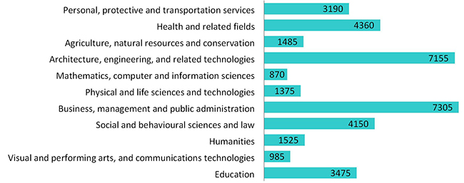 Business, management and public administration, followed closely by architecture, engineering and related technologies, are primary fields of study for more than 14,000 people aged 25 to 64 across the territories in 2016.