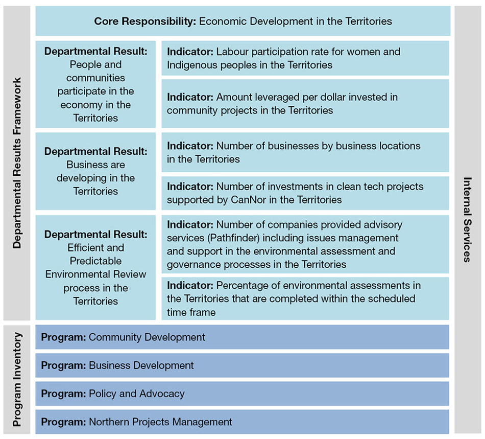 CanNor's Departmental Results Framework and Program Inventory of record for 2021–22 are shown below:
